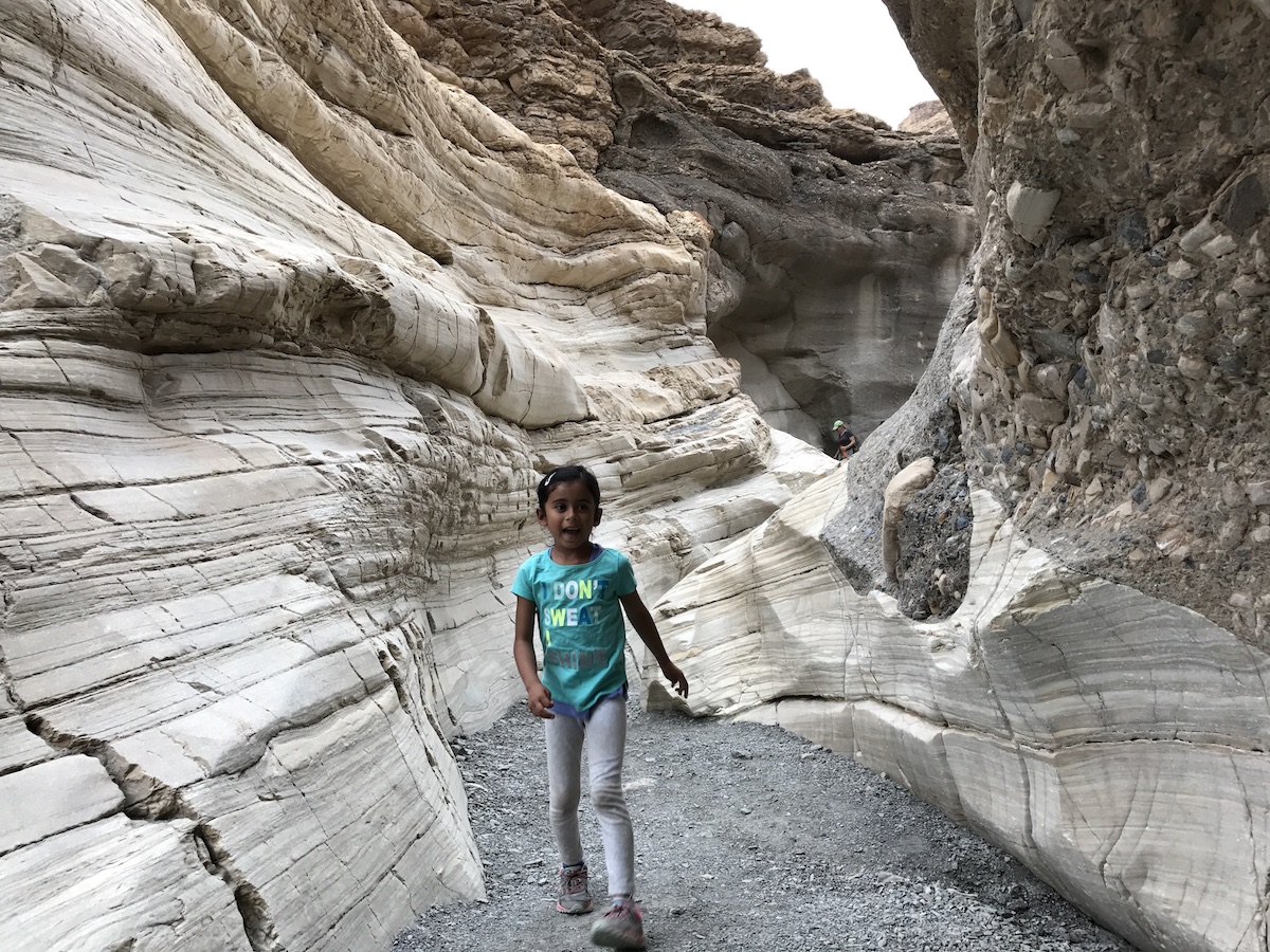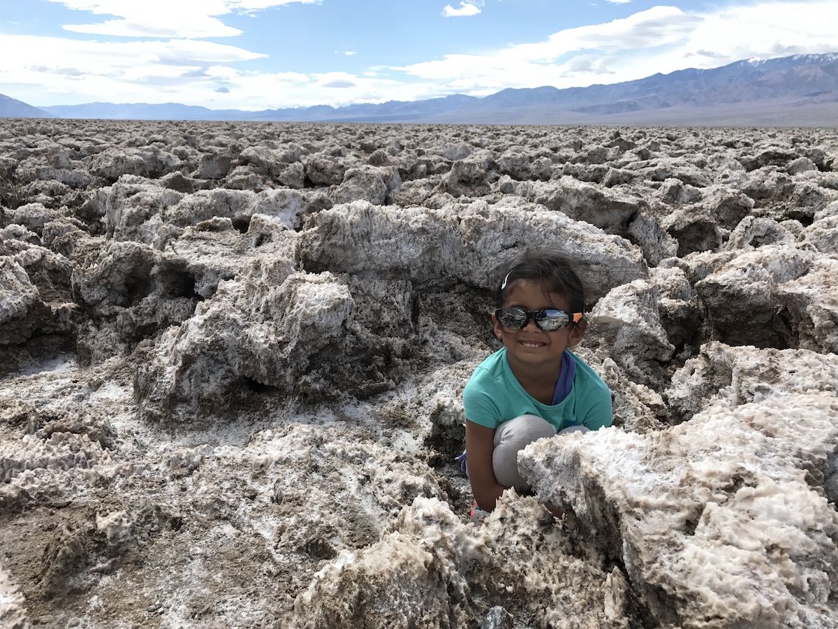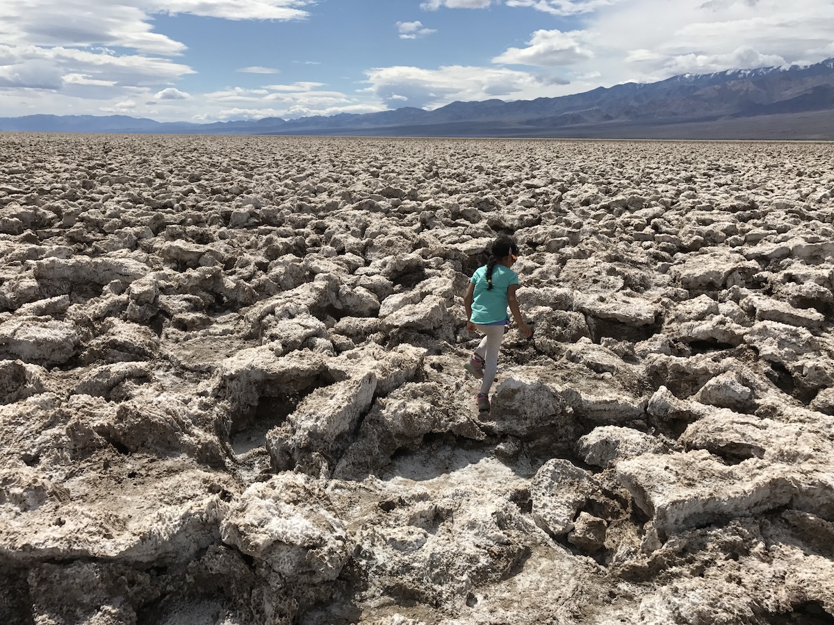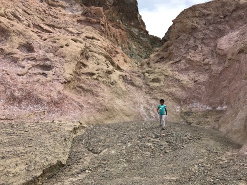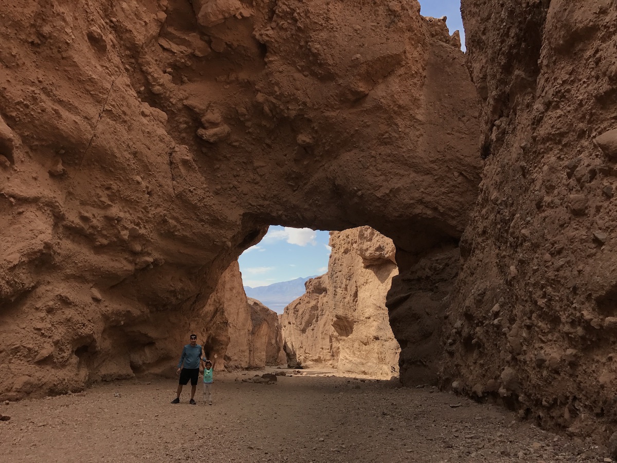 I was interested in child-friendly hikes that weren’t spaced too far apart from each other—Death Valley is HUGE—which would provide us more time for exploration. Based on recommendations from friends, information from a few guidebooks, and the National Park Service website, we settled on five locations to explore: Badwater Basin, Natural Bridge, Devils Golf Course, Artist’s Palette, and Mosaic Canyon. They were all within a 60-mile drive of each other, and were considered sites we shouldn’t miss.