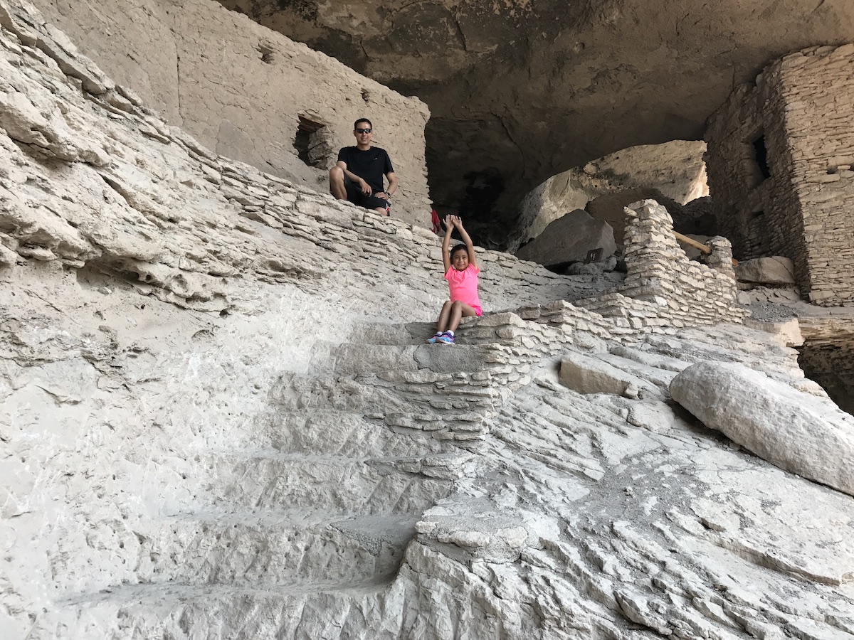 The drive to Gila Cliff Dwellings from Deming is approximately two hours, and includes great views of beautiful New Mexico wilderness. Bethany was eager to see the “rock houses” built in the cliffs in the Gila Wilderness, and the 1.7 mile round trip hike was well worth the effort. In the late 1200’s, people of the Mogollon Culture decided it would be a good place to call home; they built rooms, crafted pottery, and raised children in the cliff dwellings for about twenty years, before leaving the area behind. Over 800 years later, Bethany and I arrived, exploring the rooms they abandoned centuries earlier, and we were impressed with the planning involved in the construction of these cliffside dwellings. Notably, despite the 90°F/32°C heat outside, the shade inside the cliffs felt comfortable!